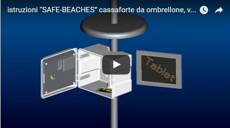 cassaforte da ombrellone “SAFE-BEACHES”. Vacanze sicure senza furti, godetevi il mare, ricarica cellulare con sole, bank power,